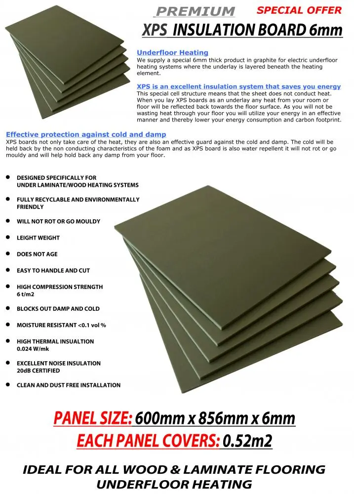 Thermal insulation is recommended to be used in conjunction with electric underfloor heating systems and is suitable for use with either a solid or suspended ground floor and will meet the current building regulation U value requirements.