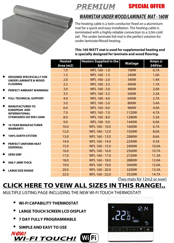 WFS advanced heating mat systems have been manufactured for professional use, yet are easy to install at any skill level. Our Under laminate cable systems provide supplementary heating for bathrooms, kitchens, and living areas where a dry install is required with a laminate or engineered floor finish. The ultra-low profile of our heating cables and simple pre-set layout enables them to be installed in a matter of hours without the need for screeding. The heating elements are simply laid into the pre-set grooves of the under laminate insulation board and the final floating floor finish is laid directly on top ensuring perfect even heating every time.